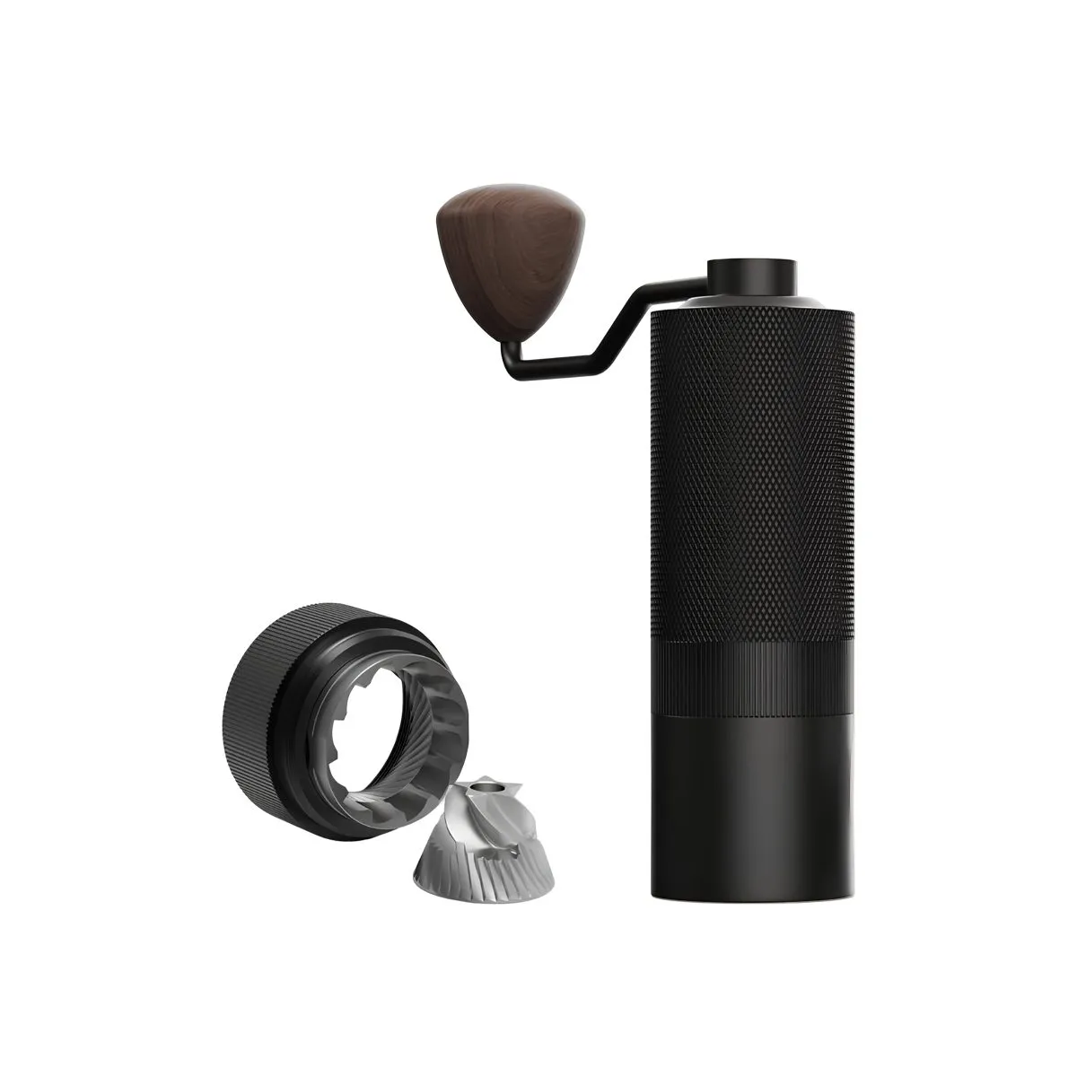 سازوکار تنظیم مرحله‌ای با ۲۴ کلیک و قابلیت رسیدن به نقطه صفر واقعی (Zero Point) موجب می‌شود کاربر بتواند از رِنج ریز برای پوراور (V60) تا درشت برای فرنچ‌پرس و کلدبرو به شکل دقیق بهره‌مند شود. بدنه آلیاژ آلومینیوم، وزن حدود ۴۴۰ گرم و دسته ارگونومیک استیل با سری چوب گردو، تجربه کاربری خوش‌دست، پایدار و کم‌لرزش را رقم می‌زند. ظرفیت هوپر حدود ۲۰ گرم برای یک سرو سرویس استاندارد خانگی کافی است و باز و بست آسان قطعات، نظافت و نگهداشت منظم را ساده می‌کند.