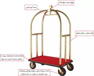 ظاهر طلایی و براق این ترولی به خوبی با دکوراسیون مجلل لابی هتل ها هماهنگ می شود و تجربه ورود مهمان را به شکلی شایسته و حرفه ای رقم می زند .