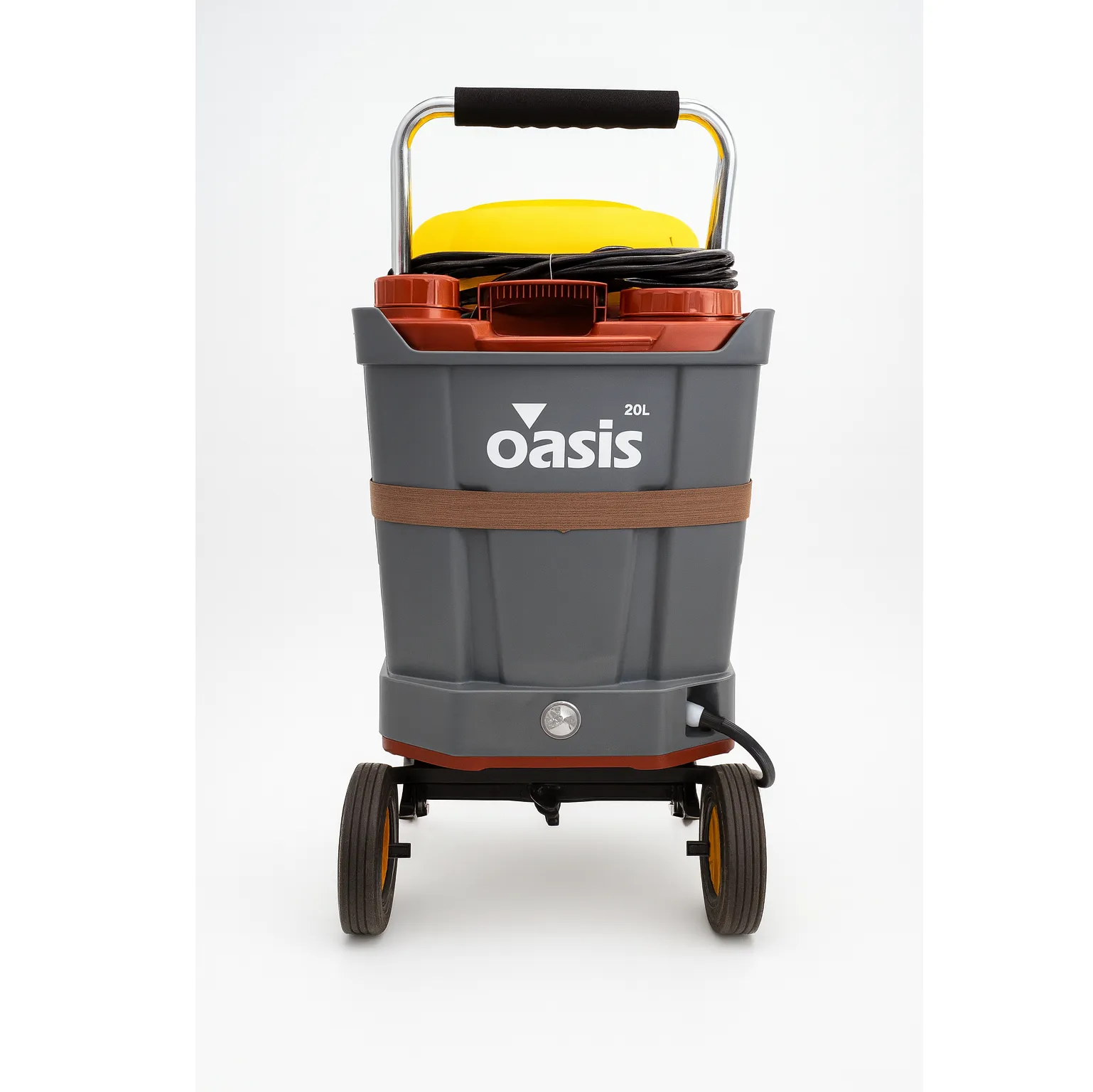 - مخزن ۲۰ لیتری آب تمیز روی گاری مجزا برای اجرای چندین سرویس شستوشو بدون توقفهای پیدرپی
